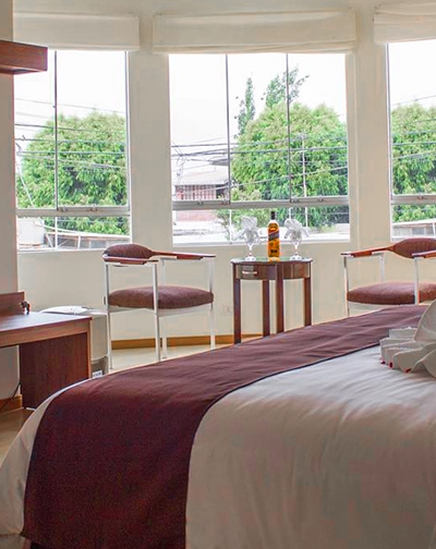 Nuestro hotel cuenta con 25 exclusivas y confortables habitaciones, que cuentan con: Zona de trabajo, Frio- bar, Amplios closets, Tocador, Balcón, Pantalla LED 50" y SMART 55", Duchas y cabinas hidromasajes, Tinas y ovalines dobles en algunos casos, Telefonía, Servicio de cable, Servicio de lavandería y planchado, Servicio de Room Service.